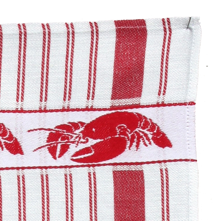 - Woven red and white stripes with red lobsters